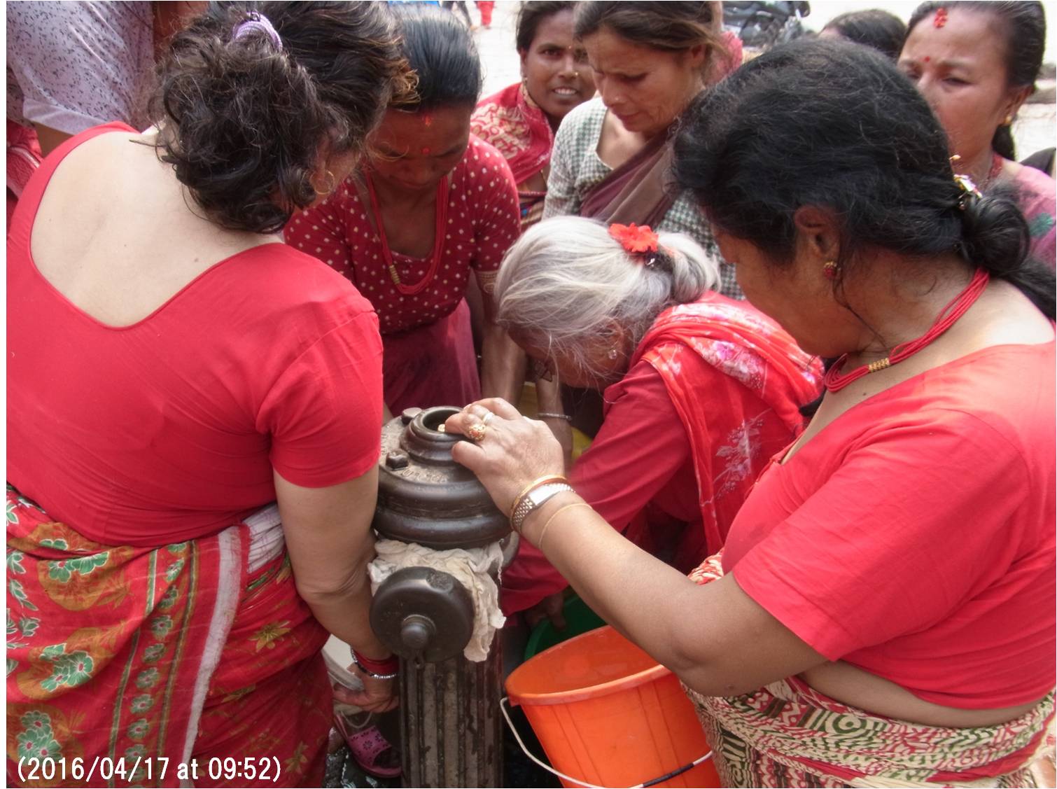 タウマディ広場には水場があり、女性たちが水壺やバケツをもってたくさん集まり、乏しい水を我先にと汲んでいました(写真5,6)。街には水タンクで配水する車が多く走っていますので、水道設備への地震影響もまだ復旧していないのでしょう。